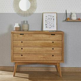 De conception robuste et durable, la commode 4 tiroirs Marley va accompagner votre bébé durant son enfance. Elle est fabriquée en bois massif de Pin qui garantit solidité et résistance à sa structure. Les fonds des tiroirs et de la commode sont en panneaux de fibres. Ce rangement est monté sur 4 pieds fuselés assurant une excellente stabilité et une allure aérienne. La commode trouve facilement sa place dans la chambre de bébé.